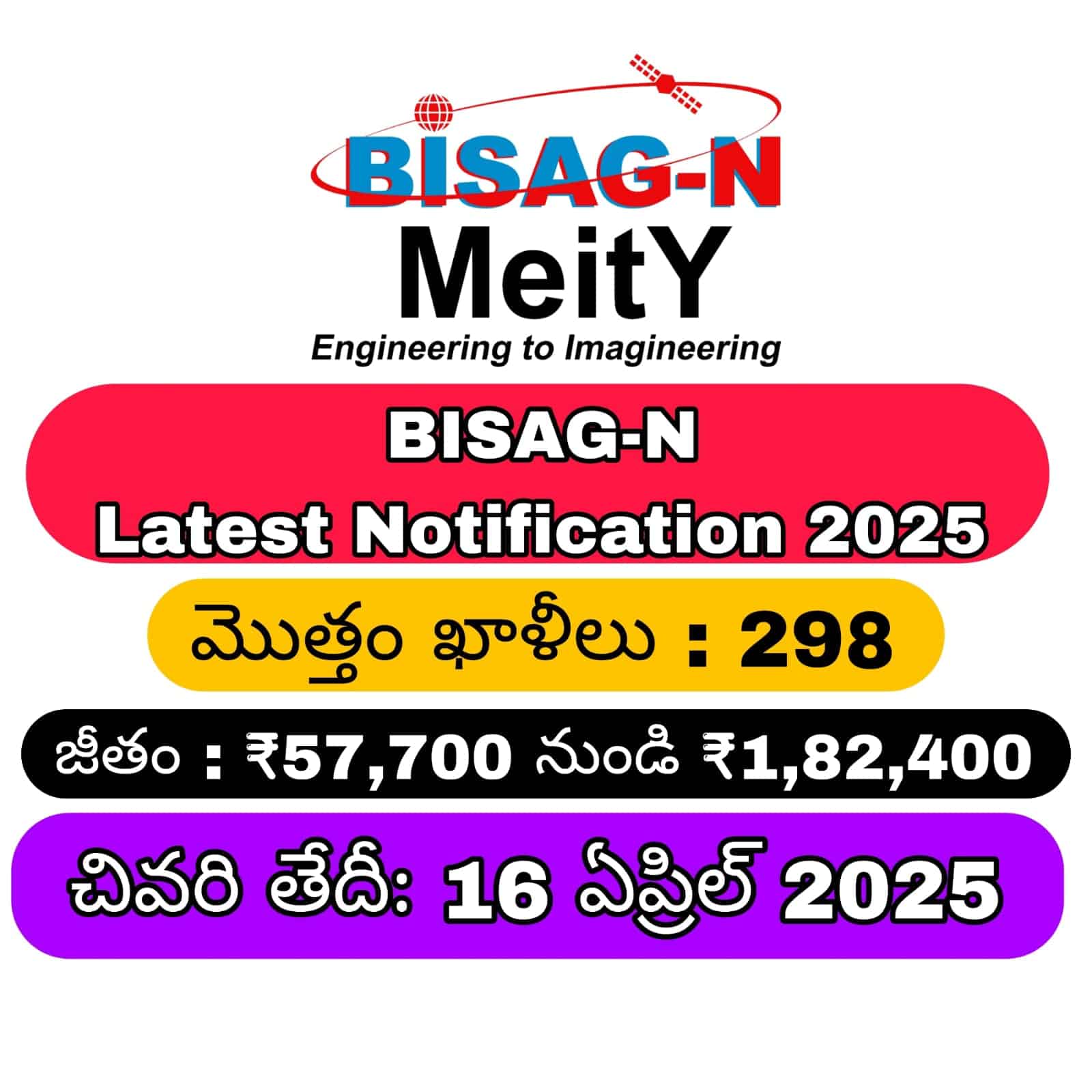 BISAG-N మ్యాన్ పవర్ భర్తీ నోటిఫికేషన్ 2025 విడుదల చేసింది. స్పేస్ టెక్నాలజీ మరియు భూసమాచార రంగంలో గోల్డెన్ అవకాశం కలిపిస్తోంది.